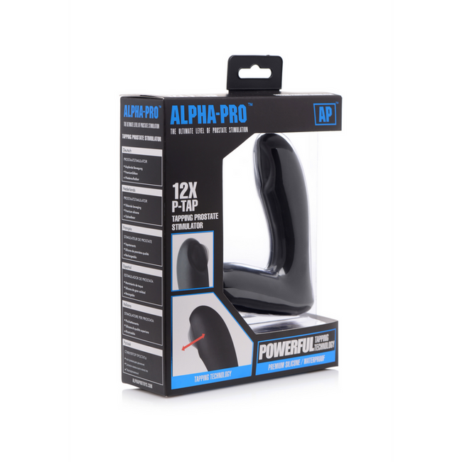 Experience prostate play like never before with the Alpha-Pro 12X P-Tap, featuring cutting-edge tapping technology. This powerful massager delivers 3 speeds and 9 precise pulsation patterns that target your P-spot with relentless taps from its sculpted tip. The entire shaft vibrates intensely, sending waves of pleasure deep inside, while the long, firm exterior lets you press firmly against your perineum for an electrifying boost. Crafted from silky-smooth, body-safe silicone, this rechargeable, waterproof device is ready for daring encounters. Measures 5 inches long with a 3.7-inch insertable shaft. USB rechargeable. Compatible only with water-based lubricants.