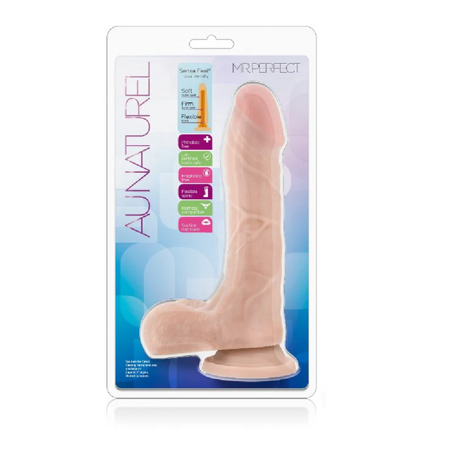 Meet Au Naturel Mr. Perfect. He's sized just right. Lifelike 8.5 inch Dildo with Balls in Beige from Blush utilizes Sensa Feel technology so he feels real to the touch. Handcrafted with detail and quality in mind. He is truly Mister Perfect. Soft Dual Density Sensa Feel for an incredibly realistic experience.
