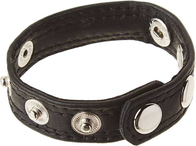 The Leather Speed Snap Cock Ring is made of high quality leather. It measures 9 inches long, .75 inches in width and features 5 snap sizing slots. It effectively holds erections harder and longer, while making the wearer look good. It needs to be fitted around both the ball sack and the penis. One size fits all!