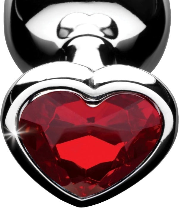 Spark your desire for decadent anal play with this beautiful Booty Sparks plug! Featuring a smooth metal finish in lightweight aluminum, it features a sweet heart shaped gem in a deep crimson red. The slim shaft will keep it from slipping out of place even during vigorous play. You will want to show off your new sparkling booty as you bend over and tease your lover.