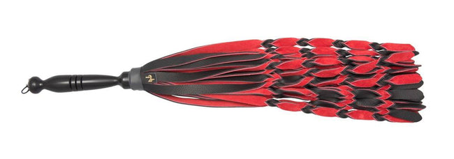This is a seriously bad boy flogger! With the 24" long, two layers of leather falls it is a heavily thuddy toy. The twists give it a bit of a delicious bite. It is loved by both Tops and bottoms. 33" overall length.