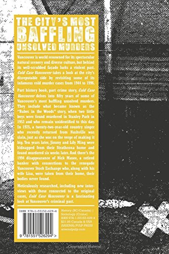 Cold Case Vancouver delves into fifty years of some of Vancouver's most baffling unsolved murders. In 1953, two little boys were found murdered in the city's storied Stanley Park, and who remain unidentified to this day. In 1975, a country singer was murdered just as she was on the verge of an amazing career. And in 1994, Nick Masee, a retired banker with connections to the renegade Vancouver Stock Exchange, disappeared along with his wife Lisa, their bodies never found. Cold Case Vancouver is an intriguing whodunit for true-crime aficionados and armchair detectives.