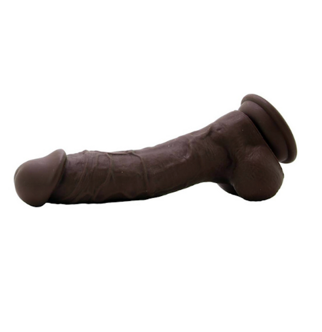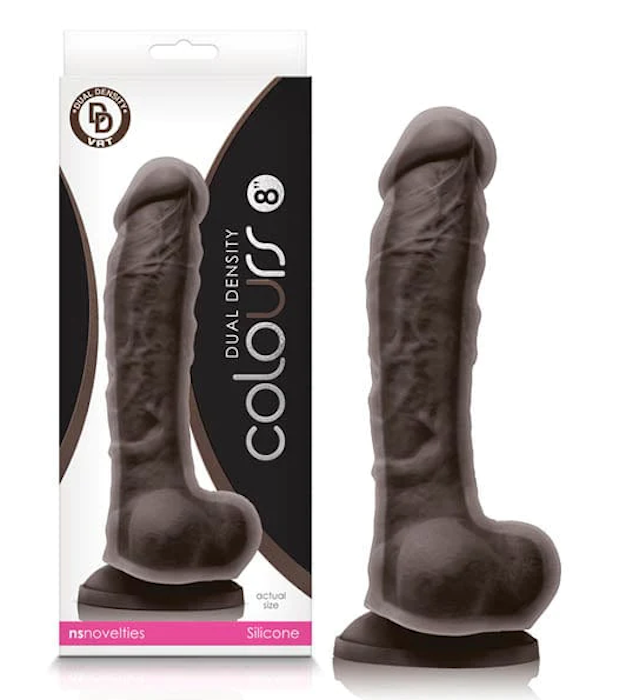 The NS Novelties Colours Dual Density 8 inch Realistic Silicone Dildo in Dark Brown is two layers of dreamy pleasures, firm on the inside, soft on the outside. This reasonable but larger sized Dark Brown-colored Dildo is slightly curved and heavily veined providing immense pleasure, soft to the touch yet stiff enough to stand up. This larger of the Colours Dual Density Silicone dongs has 7.3 inches insertable that has a 1.625 inch wide phallic shaped head with a pronounced coronal ridge that will make you pop during exit.
