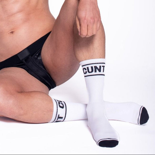 Show off your bold side with the Prowler RED socks featuring "Cunt" on the band. These cheeky socks include the Prowler paw print logo on the sole for a signature touch. Made from durable, comfortable material, they’re ideal for everyday wear or standing out at events. Embrace your confident, daring style with these empowering socks.