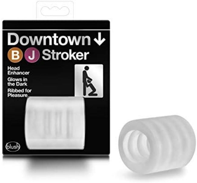 The perfect accessory for oral play! Explore new sensations as the Downtown BJ Stroker maintains a strong grip on the base of his cock. This mini-stroker is elastic and has a ribbed interior for even more pleasure in each stroke! Perfect for anyone looking to achieve that deep throat feeling without stressing their throat. Also just a fun way to switch up your game!