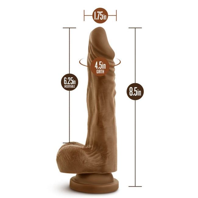 The Doctor is in. Dr. Skin Stud Muffin 8.5 Inch Realistic Cock in Chocolate Brown from Blush is ready to give you complete satisfaction. He is mighty good and strong. Dr. Skin Dildo looks and feels so real: his firmness shows that he can't wait for you. The suction cup base is perfect for solo use and it is harness compatible for pegging and other couples play.