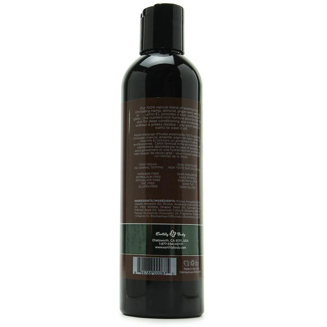 Earthly Body Hemp Seed Massage And Body Oil Unscented is made with natural oils including hemp seed and sweet almond oil. Emollient-rich oil blend works to lubricate skin and provide superior slip while leaving a non-greasy residue on skin after massage.