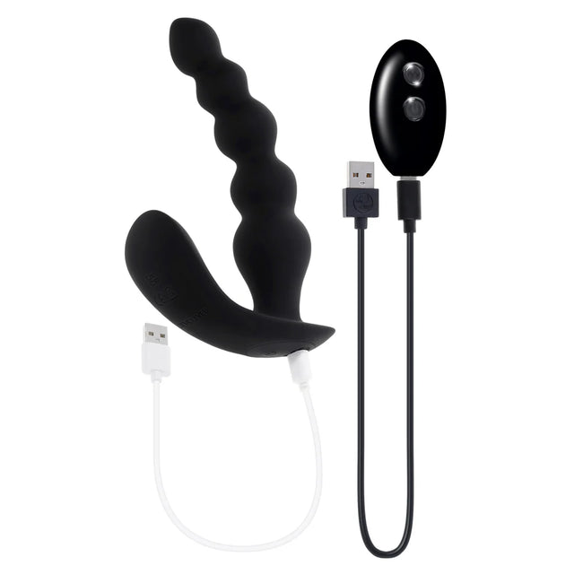 Bead me up, please! This flexible, curved, vibrating shaft features graduated beads that tease and titillate from small to large, tapering to a gentle tip at the point of entry. Meanwhile, vibrations simultaneously emanate from the bulbous chunky foundation that provides more intense intimate stimulation, doubling as a wide safety base and comfortable navigation handle.