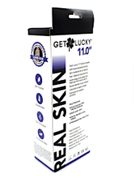 Get Lucky Real Skin Series. Dual layered, sliding skin technology for life like feel. Soft outer skin with firm center. Flexible, bends to any shape. Phthalate free, latex free, odor free. Suction base is perfect for hands free or harness play. Waterproof and easy to clean.