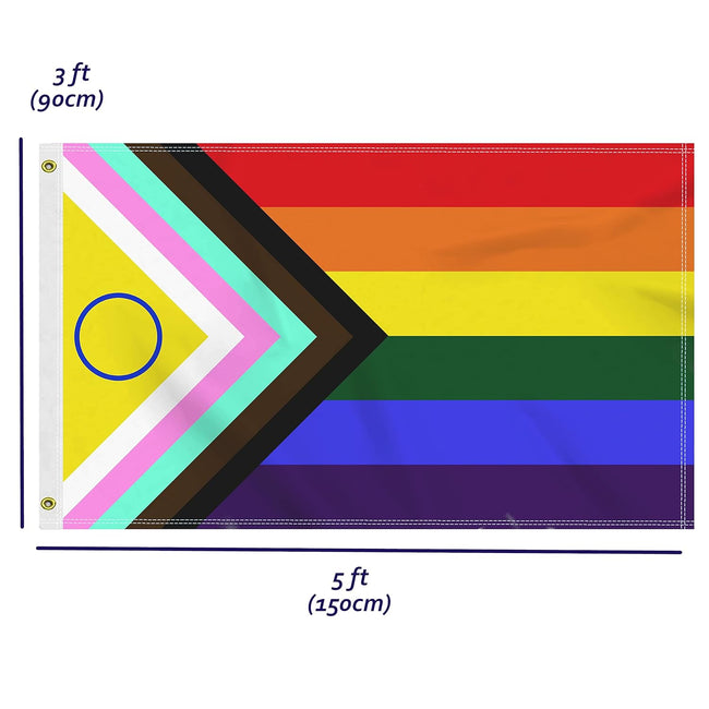 Inclusive Progress Pride Rainbow Flag - 3ft by 5ft