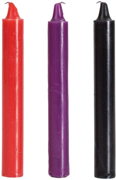 Candles are wonderful for setting the mood, but they're even better for pleasure and pain sex play. Our low-temperature Japanese drip candles are the favorite for adventurous couples everywhere. Their warm drip teases and tantalizes in a way you will never forget. Comes in a three-pack of red, purple, and black candles.