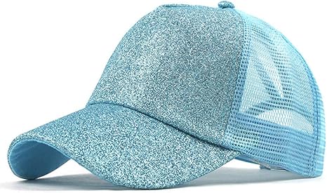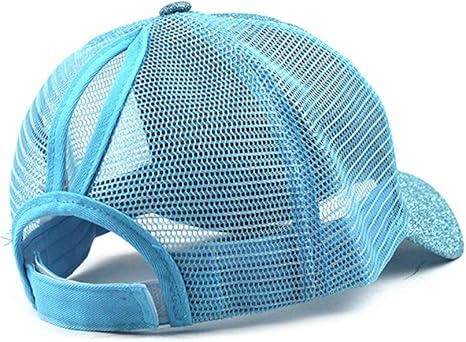 Light blue glitter baseball cap with mesh back and adjustable strap.