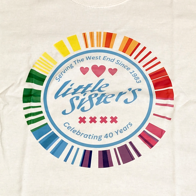 Celebrate 40 years of Little Sister's with this comfortable tee shirt made from heavy cotton for durability and a soft feel.