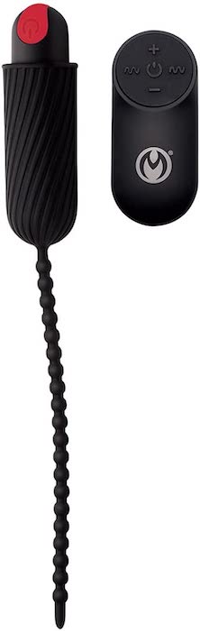 Snake these small, silky, silicone beads down your sensitive shaft and enjoy the ride! The small but mighty beads that make up this urethral sounding chain are bound to give you shivers. Choose between the 4 speeds and 7 patterns of vibration giving you a total of 28 different options. Use the battery operated remote control to change the vibe settings, or hand to a partner to double your fun!