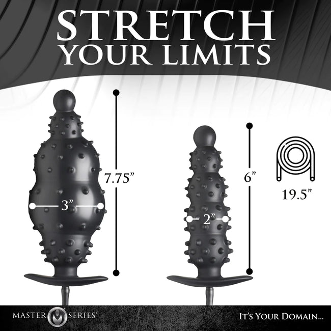 Ready for intense stimulation? This inflatable anal plug is designed to enhance sensation and stretch you from within! All along the shaft of graduated bulbs are small, spiky nubs that add texture to your backdoor during entry and while inside. With soft, round heads they are perfectly safe to enjoy but look wicked. The plug has a firm, inner core that makes insertion easier. With the help of some lubricant, you can push the plug inside and enjoy the feeling of it entering your backdoor.