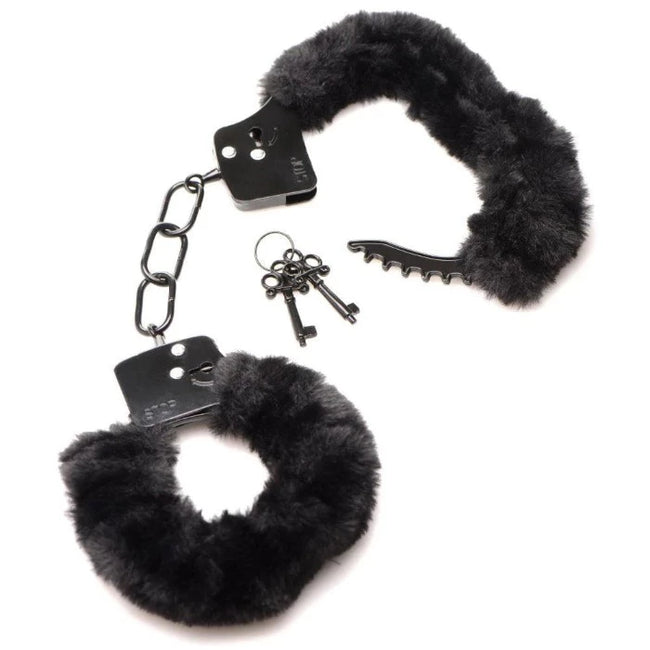 These furry, black cuffs are soft and sensual against your lovers wrists. The strong, metal cuffs inside wont cut into their delicate skin. Instead you have the padding of this faux fur, artificial wool! The cuffs are fully adjustable and close as tight as 4.5" (11.43 cm) and open wide to a 7" (17.78 cm) circumference. Included with the cuffs are 2 keys so you always have a spare!Bring some excitement into the bedroom with this furry handcuff set! Create a scene where you capture your lovely partner and keep them captive so you can act out all your naughty desires. Handcuffed, you can hear them moan and watch them squirm to get free, but they are all yours; vulnerable and exposed and ready to be ravished!