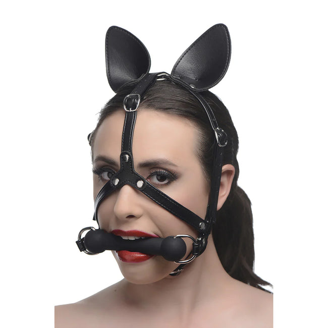 Perfect for training your prized pony, this head harness had equine ears and a silicone bit gag that will keep those neighs at bay. There are a total of 6 points adjustment points for the perfect fit. Slip it onto your slave or sub for a galloping good time at an event or if you are horsing around in private... The vegan-friendly material may be cruelty-free, but that doesn't mean you have to be! However, the nickel-free hardware will not harm your precious pony. The premium silicone bit can even be unsnapped and removed when you want to hear those beastly noises as your pet labors for you.