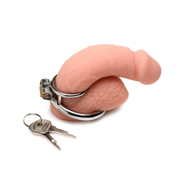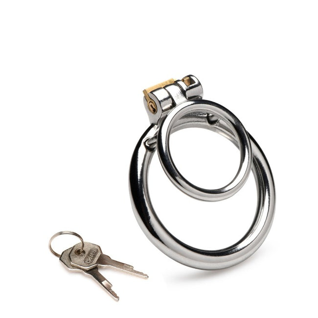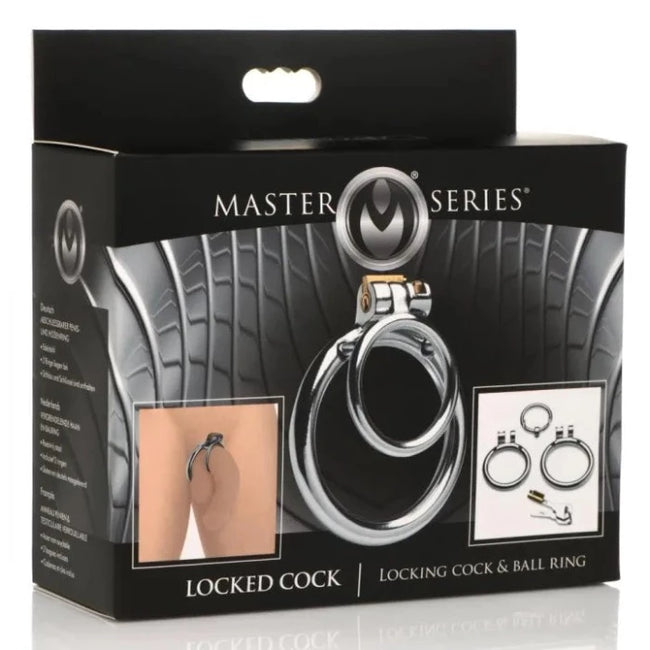 With this Locked Cock locking cock and ball ring set you are invited to be both excited and ready for the night as well as locked into captivity! With a secure locking mechanism built into the device, the rings are securely kept together and your shaft and balls are kept restricted as long as the device is on. Use the gold key included with the rings to lock the cock ring to the ball ring; choose between the 1.75 inch or 2 inch diameter ring to fit around your balls and scrotum then slide the cock ring over your shaft to lock into place. Do not lose the ring!