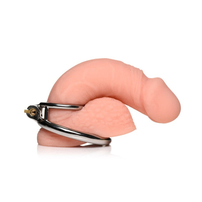 Start by choosing the ring size that feels comfortable around your balls. Then, slip one testicle in at a time. Once both are through the ring, pull a semi flaccid shaft through the ring as well. Grab your cock ring and slip it over the head of your shaft and line it up with the locking pins of the ball ring, then take the key and lock it securely into place. For your first time, use it for no more than 30 minutes to an hour; make sure you don`t feel numbness. Once you get used to wearing it, enjoy enhancing playtime with your partner or simply enjoy how the cool, hard steel feels against your shaft!