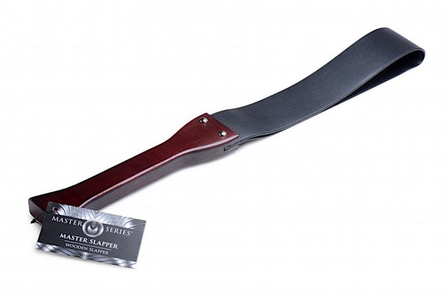 Punish with authority with this Master Wooden Slapper! The thick, ergonomic wooden handle makes this slapper satisfying to hold and swing while the supple PU leather strap delivers just the right amount of sting for your partner to enjoy. Excellent for all BDSM skill levels for dishing out discipline to your bratty sub!