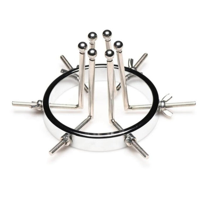 Ms Oculus Stainless Steel Anal Explorer - Xr Llc. This stainless steel anal explorer is perfect for those into medical play who want to expand and stretch open their backdoor! Made out of strong, durable, non-porous, nickel-free steel, it`s compatible with all lubricant types and is nonporous. The Anal Explorer consists of one large ring with a diameter of 4.1 inches and 6 dilators that have smooth rods with small, round, balls on the ends of them. Insert it almost 3 inches deep and spread their hole wide open!