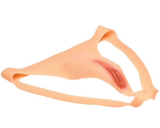 This stunning piece features an ultra-realistic vulva designed to look and feel just like the real thing. It wears like a classic jock-strap, with only two skin-colored straps around your buttocks, leaving your booty delightfully exposed. Dive into the premium experience offered by the super-stretchy, body-safe silicone material. Enjoy the added benefit of a textured pocket at the front, perfect for accommodating your partner's shaft for deeply satisfying penetration.