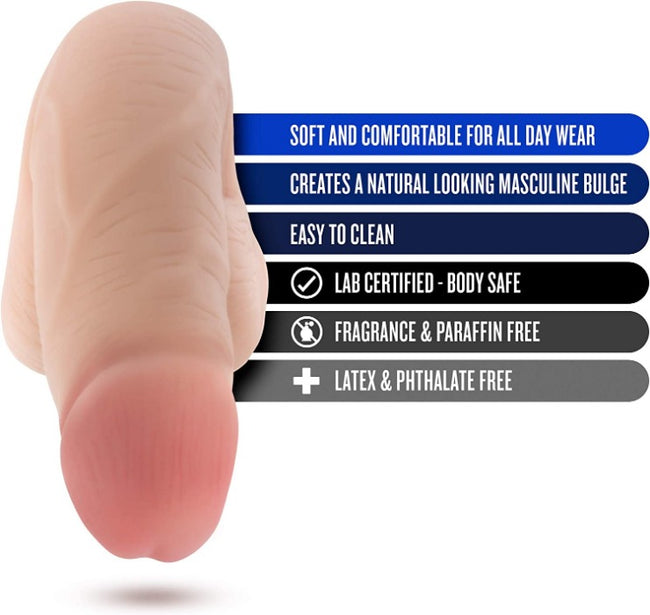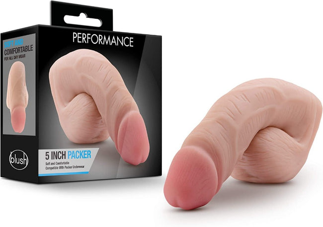 The Performance 5 Inch Packer is a soft, realistic way to pack all day. Its comfortable shape creates a natural-looking bulge. Compatible with packer underwear, the 5 Inch Packer delivers realistic skin texture and tinted head for extra lifelike effect. Made of premium body safe TPE, the Performance contains no harmful chemicals and is easy to keep clean.
