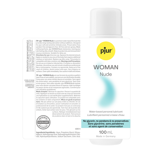 Our water-based personal lubricant without any additives! In the cosmetics and fashion industries, nude is a by-word for natural, genuine products. So it’s no surprise that pjur WOMAN Nude does not contain glycerin, parabens, oil, fat, perfume or preservatives.
