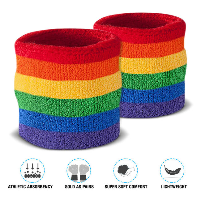 • Rainbow Color Heavy duty 3 x 2.5 Inch Gay Pride Rainbow Sweat/Support Wrist Band.