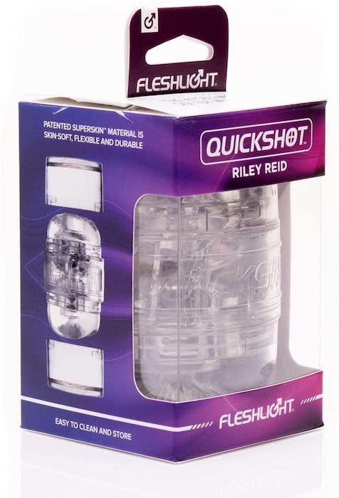 With the clear and compact Riley Reid Quickshot by Fleshlight, you'll be able to watch every satisfying moment of self-pleasure. Equipped with both Riley's vagina and butt, the Quickshot gives you two ways to enjoy your time with this hunk. Or invite a partner over for some three-way oral action with Riley. With so many ways to enjoy Riley Reid, you may never leave the house again!