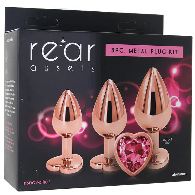 Rear Assets 'Heart' Gem 3pc Anal Plug Kit -Rose