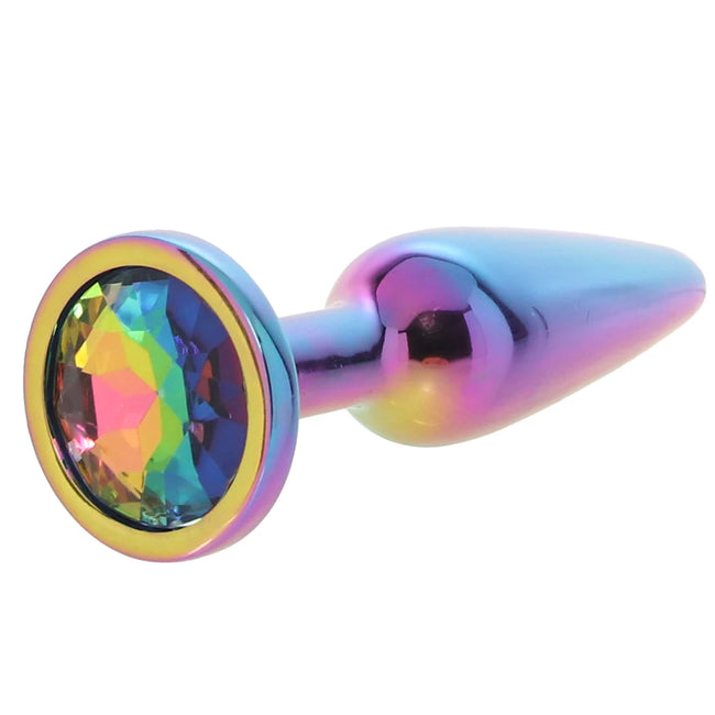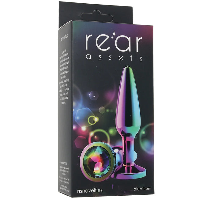 The Rear Assets Medium is a sparkly butt plug that adds safe, smooth fun for beginners and experienced users alike. Made from body-safe aluminum, it offers gentle stretch without being too much. The wide base ensures security, and the Rainbow jewel adds a stylish touch. It's easy to clean, durable, and works with any lube—water-based or silicone.