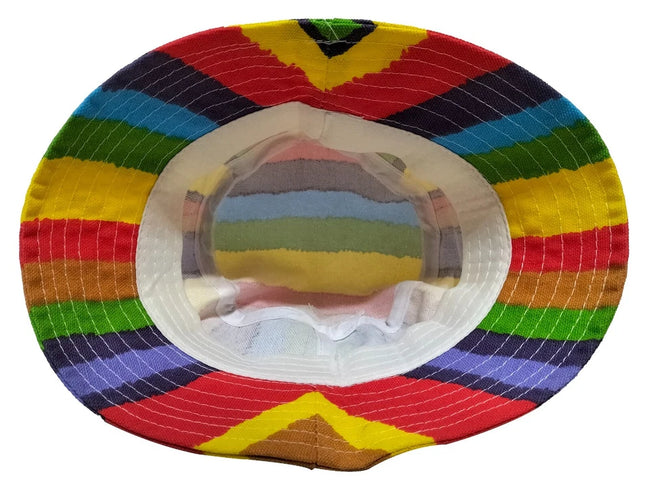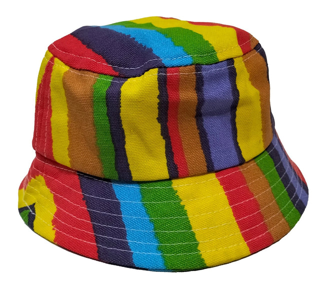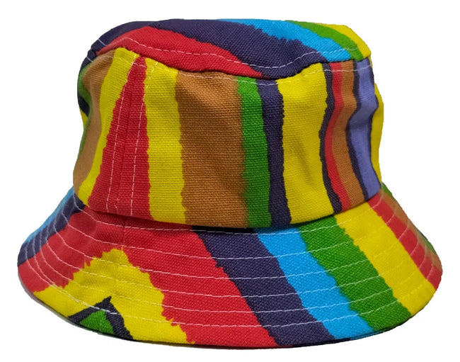 Striped Rainbow Bucket Hat. Great for keeping cool in the sun.