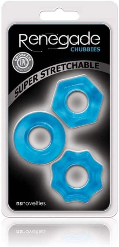 Got a constriction mission on your hands? Renegade's Chubbies Super Stretch C-Rings are playful and plushy, but also super-effective. Mix and match the three styles to suit your style- each can be worn over shaft, shaft and balls or balls alone. Comfort and control delivered by renegade chubbies. Super elastic, these stackable rings have multiple uses. Body Safe TPE is suitable with all lubricants.