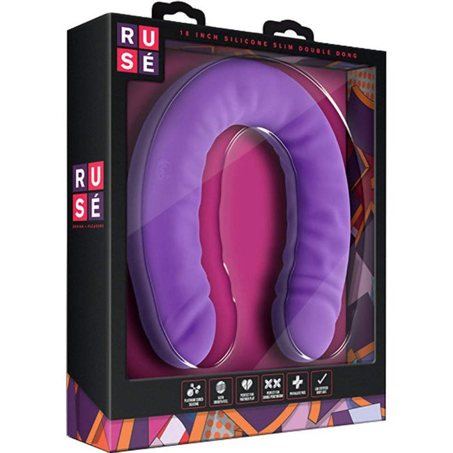 Feeling adventurous? The Rus 18 Inch Silicone Double Dildo is U-shaped, holds a curve, and is loaded with creative possibilities. Use it alone as a penetrative toy with added reach and let the curve guide its way to your G spot. Or go deep and hard into double penetration with yourself or a play partner!