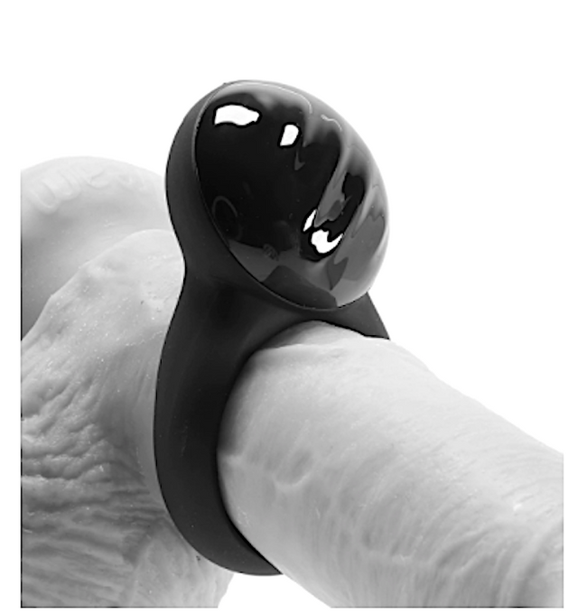 Worn over a penis-owning partner's shaft, or shaft and balls, or over the base of a favorite dildo or strap-on, this over-sized, anything-but-subtle silicone cock ring provides some seriously effective erection enhancement benefits plus lots of textured stimulation and perfectly placed vibration. Line up the big, firm vibrating section with a mate's clitoris or perineum, or flip it around to target your/their balls. It's nice and stretchy for easy placement, but holds reliably tight to prevent slips and ensure a rock-hard erection.
