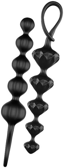 Satisfyer Anal Beads 2 Piece Set - 2 Different Shapes in Soft Silicone with Increasing Diameter, Retaining Strap - Ideal for Beginners (Black), 15 Year Warranty!!