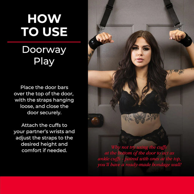 Featuring plush cuffs for comfort and durable straps for security, these restraints can be adjusted to fit different heights and body types, ensuring a perfect fit for every user. Whether you’re indulging in light teasing or intense play, the Doorway Control Play cuffs offer a safe and enticing way to explore your desires and unleash your fantasies.