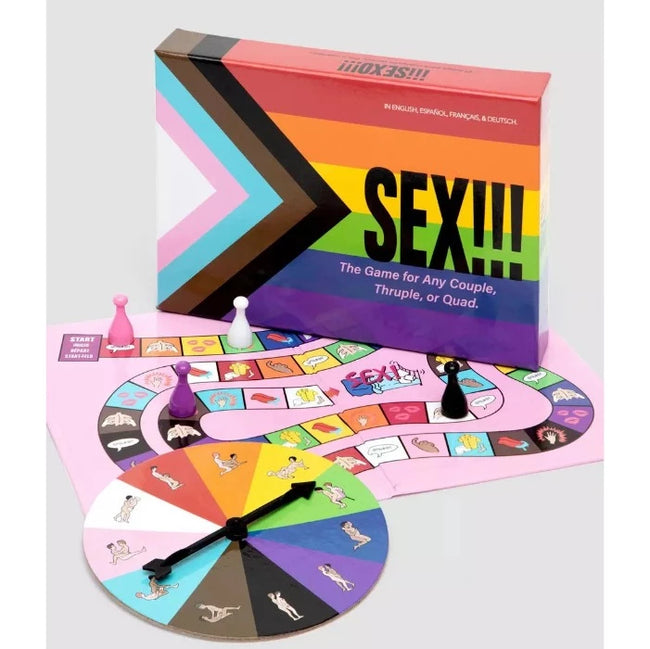 The fast-paced board game of foreplay and sex play! Each player spins the dial to move around the board, completing foreplay actions for each space. The first person to the end spins the wheel for the winning sex position. Suitable for any couple! Includes game board, spinner, and four game pieces.