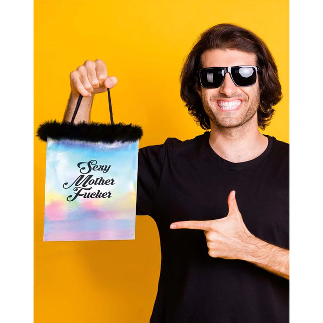 Elevate your gifting game with our irresistibly charming “Sexy Mother Fucker” gift bag! Made from premium card stock paper, it exudes elegance and durability, ensuring your gift is presented in style. The shimmering iridescent foil and black marabou band adds a touch of magic and whimsy to any occasion. Delight your loved ones with a gift that is as fabulous to give as it is to receive. Get ready to make hearts skip a beat and leave a lasting impression with our unique and high-quality gift bag.