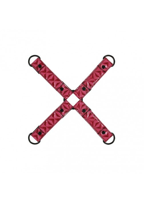 The latest addition to our top selling Sinful line is presented. This Hogtie, available in red, allows you to attach wrist cuffs and ankle cuffs behind your lovers back. Made of easy to clean vinyl and sporting all black nickel-free hardware.