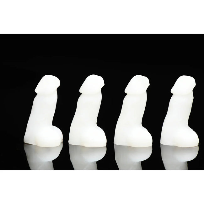 Introducing the perfect accessory for your next party—our Four Mini Dildos set! This playful pack includes 4 mini dildos that are just the right size to stand up on their own and can be attached to various small objects like light switches, pencil tops, or bike tire valves. Ideal for adult-themed parties or gag gifts, they are bound to surprise and amuse. If that wasn't fun enough, their ability to glow in the dark makes them perfect for clever hiding places! Turn off the lights and let people discover floating peckers in the night! Made from high-quality, body-safe silicone, they are free from harmful chemicals. Spice up your party or work environment with these fun, novel items and watch the laughter unfold!