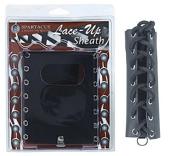 Sheathes are designed to focus your attention on the many pleasures of encasement. This Spartacus Lace Up Sheath can also double as a cock chastity device or the D-ring on the end can be used for leash or weight play. The look. The aroma. The texture. Nothing arouses the senses like leather. Those who enjoy cock-and-ball play know that a leather sheath enhances the pleasure like no other material, That is why Spartacus use only the softest oil tan leather. Made out of high quality leather, this accessory provides a good comfortable grip over your loving rod. You can adjust the tightness of action using the simple lace-up closure. So it is only up to you and your kinky imagination to decide how tight the action should be.