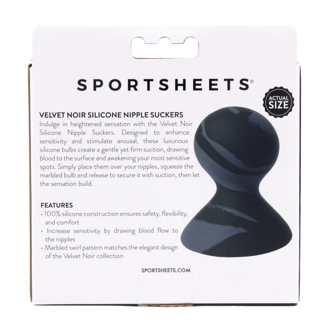 Indulge in heightened sensation with the Velvet Noir Silicone Nipple Suckers. Designed to enhance sensitivity and stimulate arousal, these luxurious silicone bulbs create a gentle yet firm suction, drawing blood to the surface and awakening your most sensitive spots. Simply place them over your nipples, squeeze the marbled bulb and release to secure it with suction, then let the sensation build. Perfect for solo exploration, playful foreplay, or an exciting twist during intercourse, these suckers are as beautiful as they are functional.