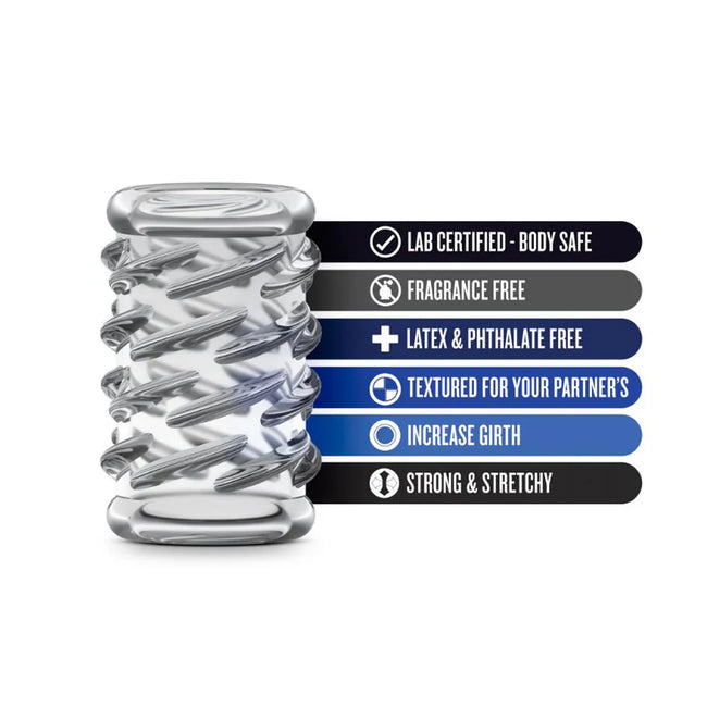 This stretchy cock enhancement sleeve is a simple way to add a new level of pleasure and sensation to your penis, favorite dildo or vibrator. Just slide the sleeve over your shaft. Stack them for even more pleasure. Buy more so you can mix and match and stack them to create a unique erotic experience every time. Easy to use, and stays in place. Measures 2" Length x 1.4" Width. Comfortably stretches up to 3" Wide. Maximum stretch to 5" Width. Lab tested body safe. Silicone, water based, hybrid lube compatible.