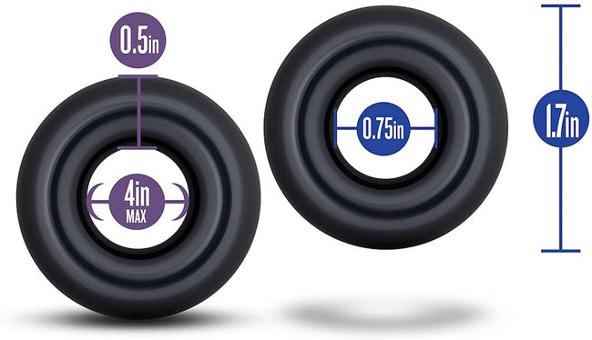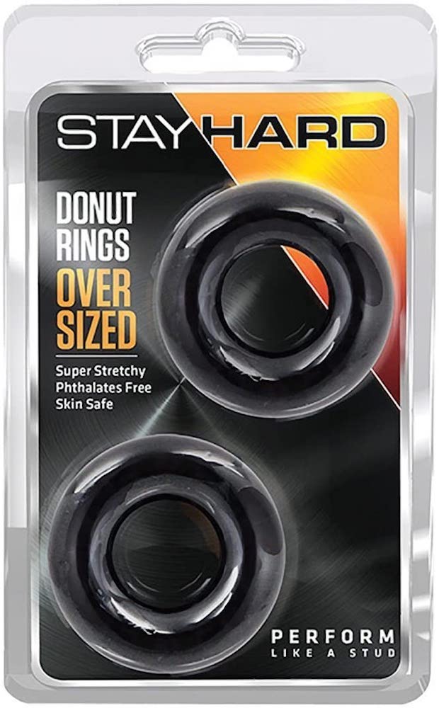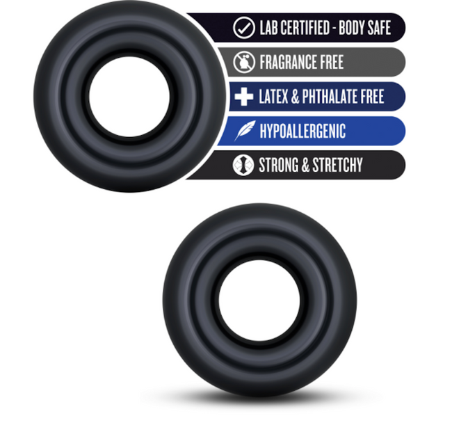 Perform like the stud you are! These Stay Hard Rings are a simple seductive add on to prolong your erection so you can prolong your sessions with your partner! Stay Hard cock rings provide amazing benefits as these can be used around the shaft or both the shaft and testicles to increase both your size and stamina. 33% thicker than our regular Donut rings so they aid in improving your stamina even more! Made from our proprietary blend of super stretchy Elastomer for your safety and hygiene during your intimate play. So pick up this Elastomer Donut Ring set by Blush tonight, you and your partner will love your bigger, harder erection that lasts longer!