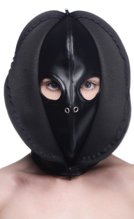 Objectify With Ease: Equip on your partner to transform them into an object for your pleasure; breathable inner hood for your subs comfort, with a zip front outer hood for instant objectification
