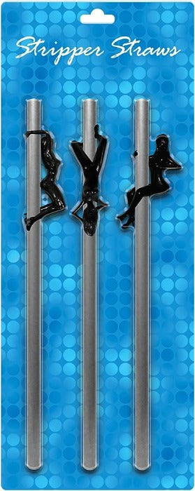 Each pack contains 3 silver colored straws with sexy stripper plastic figures attached to each pack! The strippers can be moved up and down to accommodate different cup sizes. Straws are 8-1/2" long.