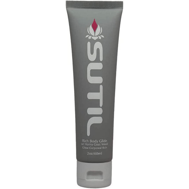 Sutil Rich Lube is the newer, thicker, longer-lasting formula. Made for activities that need some extra slip, such as anal sex. It also features Horney Goat Weed which is known for its aphrodisiac properties which help bring blood to the areas it's used on without any tingling sensations. For a lighter-weight lube check out Sutil's Luxe Body Glide Lube.