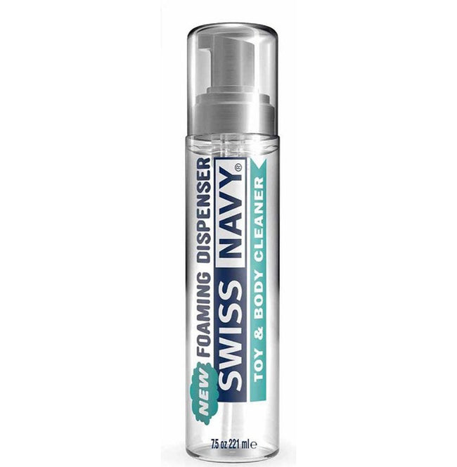 Clean is good. SWISS NAVY Foaming Toy & Body Cleaner is Better. Using an unclean toy is almost like unprotected sex. Without proper cleaning, a toy may become a breeding ground for things you don't want in your body. Using bleach or soap and water only goes so far. Q. How do I use it? A. After toy play, spray the toy with a complete coating of the cleaner. Wipe the toy with a clean cloth and rinse the toy with water. Air dry the toy for the next use. Swiss Navy Toy & Body Cleaner excels at cleaning toys when silicone lubricants have been applied.